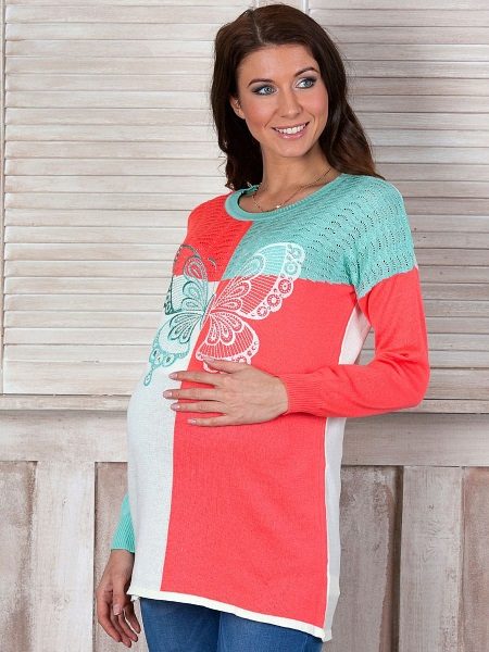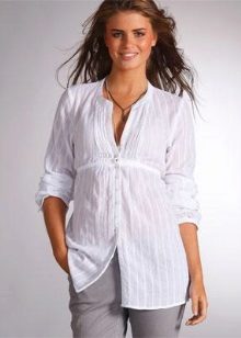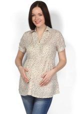 Pregnant women are better off choosing A-shaped tunic shirts; the second option is high-waist shirts. So, they will help visually hide the volume in the abdomen.