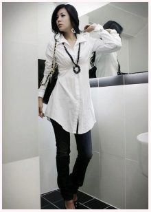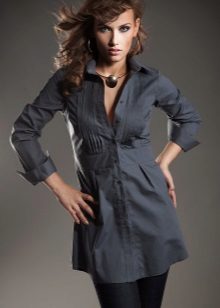 The tunic shirt is an elongated loose-fitting shirt. This thing combines the properties of a shirt and tunic at the same time. This is the most practical option.