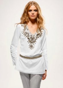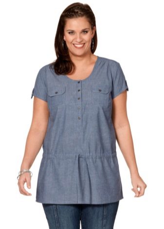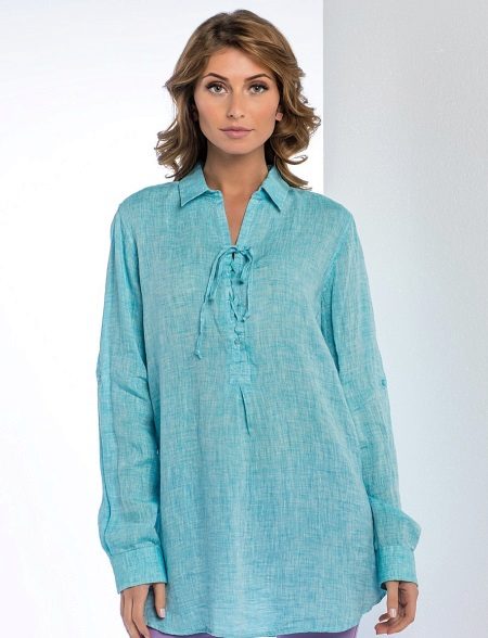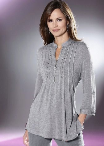 The tunic shirt should sit freely on the figure and emphasize the elegance of the lines. Therefore, you should choose models from natural soft tissues.
