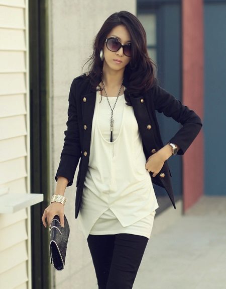 On top of the tunic, you can wear an elongated jacket or jacket to enhance the business effect.