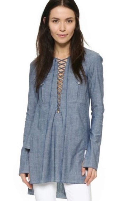 Separately, you should cancel the denim tunic shirts. They can be worn in any season. This is a stylish and perhaps the most practical option.