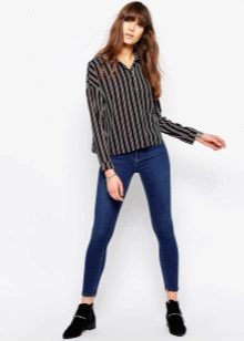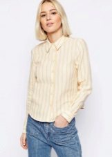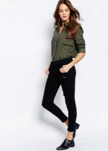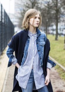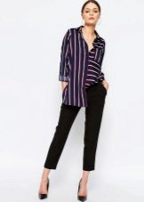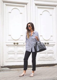 A pinstriped shirt can fit into any wardrobe, from casual to business. Various outerwear will help to make the image more complete and interesting - a casually thrown jacket, cardigan or jacket-jacket.