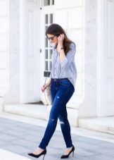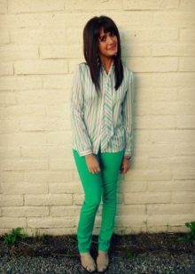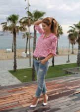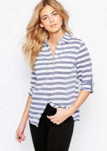 Any shirt, and striped - is no exception, goes well with a blazer or jacket. Such a tandem will be appropriate in any situation. If you make up a business image, complement it with trousers, jeans and even shorts are suitable for every day. If you think that the image will look too boring, just pick a bright color blazer that will be in harmony with the color of the shirt.