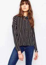 A black striped shirt looks very stylish, it adds a twist to any look. This model is ideal for a fashionable party, presentation, concert and even publication. She can be either a soloist of the image, or complement a bright interesting look.