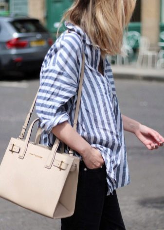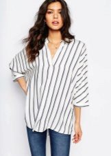 A shirt with a wide strip looks more bright and catchy, therefore it requires more care. But remember, contrary to popular belief, large horizontal stripes are by no means slim, but rather make the silhouette heavy, heavy, adding extra volume to the figure. Therefore, a shirt with such a print is suitable only for those girls who are confident in their figure. Wear it with a pencil skirt, skinny pants, and stylish jeans.