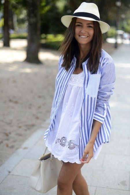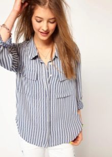 For every day, wear it with jeans and an oversize cardigan. It will also be interesting to look with shorts and skirts. A blue striped shirt is very popular, and is not going to leave the fashionable Olympus yet. Therefore, you can not hesitate to purchase the model that suits you.