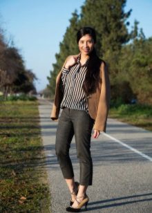 Surely you at least once in your life dressed like this for work, so this combination seems boring to you. To look fresh and interesting, choose a shirt or trousers of an unusual style. As with jeans, it can be left semi-filled. Top you can throw a blazer or a cozy cardigan.
