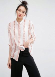 A pink striped shirt is perfect for sensual romantic looks. It will go well with denim items, puffy skirts and cropped trousers.