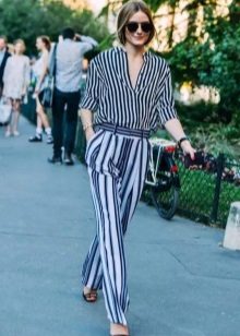 Even if you have a striped shirt of the simplest cut on you, you can revive the image by wearing it with striped pants!