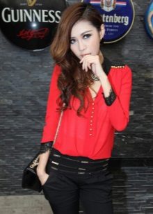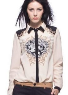 Often when decorating, metal fittings are used - various corners, spikes, rivets. Choosing just a few of these elements, you can get an interesting and stylish version of the shirt, which from afar resembles a biker style, but, nevertheless, looks good in the office.