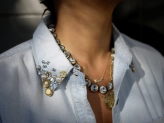 The most restrained and sophisticated people to decorate the collar can use a small brooch - precious stones will never lose their relevance, because they help to demonstrate the luxury and chic of its owner.