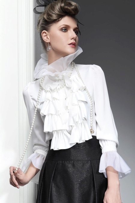 The high collar came in modern fashion from the Victorian era, when luxury and chic were demonstrated by the presence of a large number of layers of expensive fabric on the neck, flowing down to the chest and shoulders. Over time, this item of clothing has undergone significant changes, but, nevertheless, remains very popular.