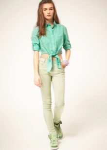 Light green shirts (lime, pistachios, lime) are suitable for creating a very delicate and romantic look.