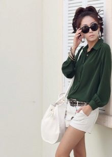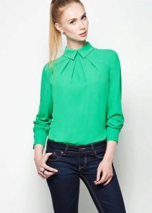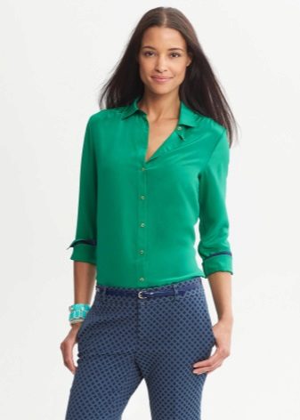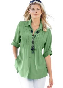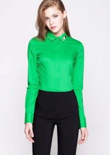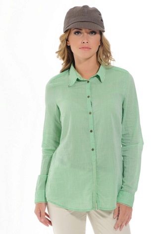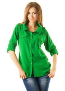 Green color is one of the brightest, freshest and energetically strong elements in the color scheme. That is why he is so often found in collections of women's and men's clothing. One of the most popular green items in women's wardrobe is a shirt. It is perfect for creating business, romantic, classic, ethnic and other clothing styles.