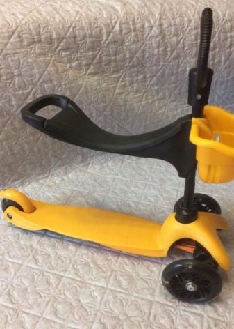 The disadvantage is that the components must be kept somewhere, that is, if the child wants to independently transform the scooter, then he will have to carry a seat with mounts. Of course, they can be fixed independently, but for this you need to be confused.