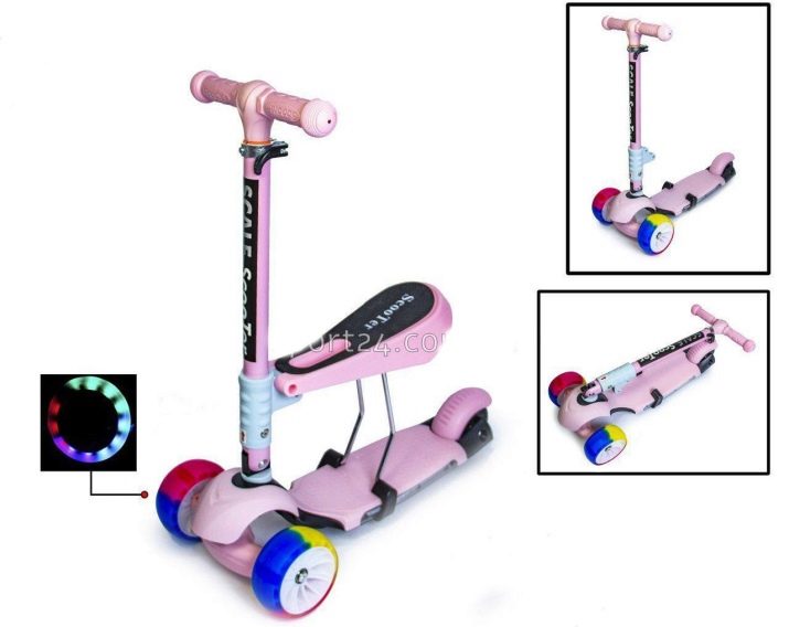 The advantages of such children's scooters can be called versatility, variability and the presence of a quick-release handle.