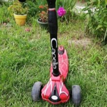 The maximum user weight of this reliable and powerful machine is 50 kg. The spacious deck has a size of 13 x 34 cm. The wheels have a backlight. Scooter, justifying the name, is rapidly gaining acceleration. Suitable for children from 3 years. Made in four monochrome colors: red, green, pink and black. Rubber handles provide firm grip. The stand can be fixed in three positions: to a height of 690 mm, 750 mm, 810 mm.