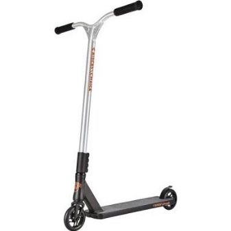 Another stunt scooter, in which the deck is made of aluminum alloy (53 x 12) with anti-slip coating, and the wheel is made of forged steel (height 94 cm). Wheels with a diameter of 110 mm with aluminum spokes and ABEC 9 bearings. Reliable clip on 4 bolts. Weight - 4 kg. The maximum load is 100 kg. The main disadvantages include the cost of the scooter - 22,600 rubles, as well as the absence of wings and shock absorbers.