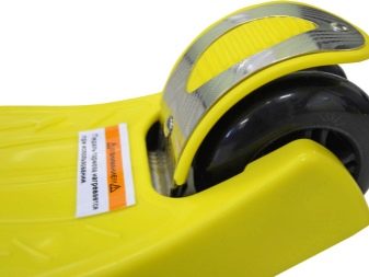 - Brake. Even the smallest children can easily cope with the manual version, but in many models there is also a foot brake, which is not so easy to cope with. To stop the rolling tool, you need to press the foot on it in time to block the movement of the scooter. Therefore, it is better for little girls to choose a design with a hand brake.