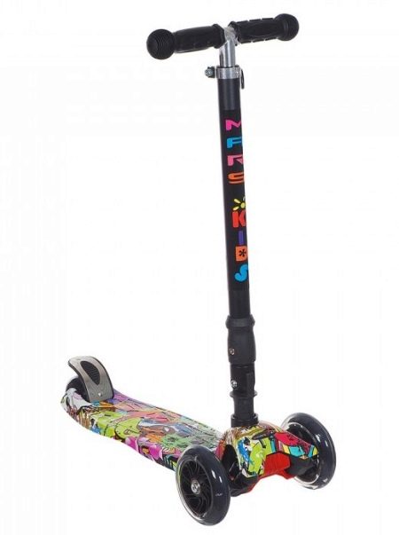 Sweet Baby's Triplex Light is robust and safe. The design is designed for ages from 1 year to 6 years. Kickboard can carry up to 40 kg. The frame is made of decent plastic. The foot brake stops the luminous wheels perfectly.