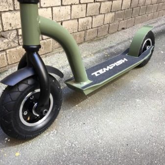 The larger the diameter, the greater the weight. Accordingly, models on pneumatic wheels are the heaviest, can weigh several tens of kilograms. The maximum diameter of the wheels of the scooter reaches 355 mm.