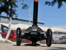 Three rubber wheels and a fairly wide platform make it possible to make this scooter model extremely stable on any road surface.