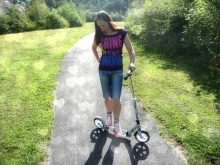 Here, ABEC 5 integrated bearings are used, which in combination with large inflatable wheels allows this scooter to develop excellent speed.