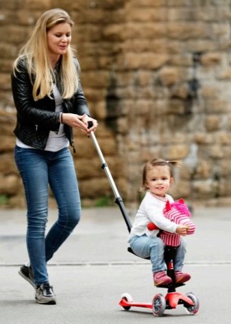 The line for the smallest is called - Micro Mini2Go. Such a three-wheeled scooter is designed for children up to one and a half years. One of the features of the lineup models is the presence of a special pen, which allows parents to control the ride of their child. Another important feature of models from this line will be the presence of a small luggage compartment, where you can put your child’s toys or the right things.