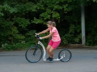 So they call bicycle scooters. These are off-road devices that have many similar features with ordinary bicycles. There are full-sized wheels with a diameter of 29 inches. T-shirt models have good overclocking. The typed speed is maintained better and longer, but the rider has to make a lot of effort to control them. T-shirts have these advantages: