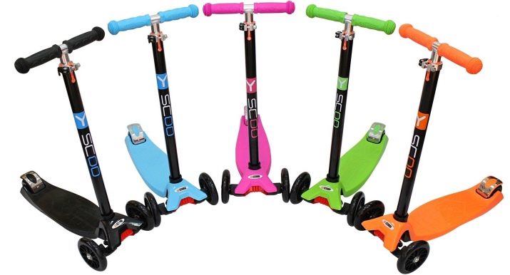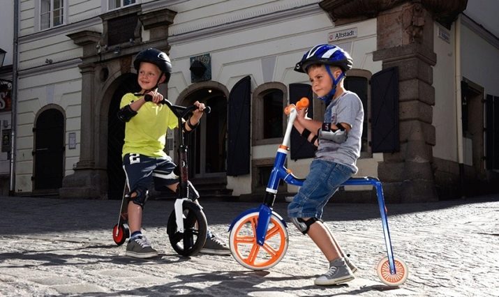 These three-wheeled scooters are designed for both the youngest children and for 7-year-olds. They have 2 front wheels with a diameter of up to 12 centimeters, as well as 1 smaller wheel located at the rear.