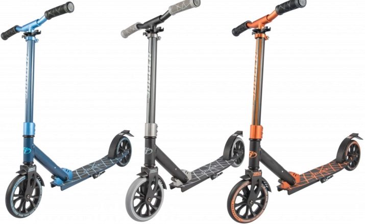 This model of scooters is suitable both for children who are just going to kindergarten, and for students. These scooters can withstand weight up to 90 kilograms. The product is lightweight, its weight is 2.5 kilograms. The scooter is additionally equipped with a folding handle. The diameter of the wheels is 12.5 centimeters, which allows you to ride at a speed of 30 kilometers per hour.