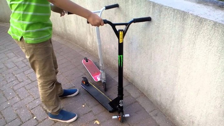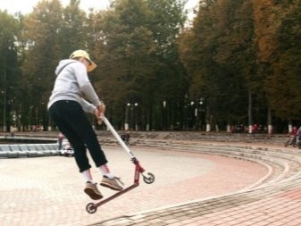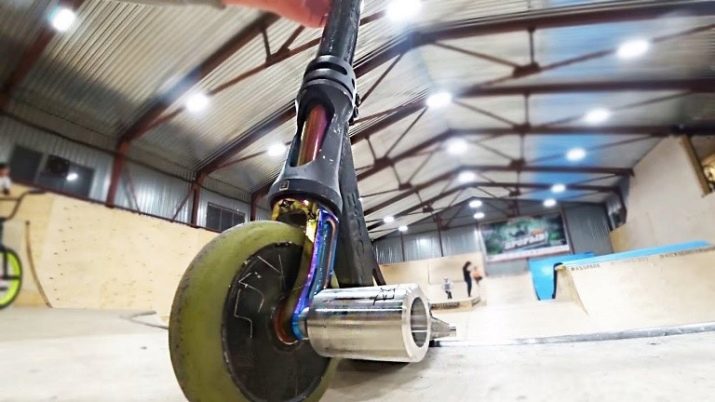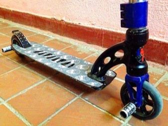 Although this design element helps in performing tricks, it’s easy to catch on. Often, athletes get injured due to the excessive tilt of the steering wheel, since then the pegah touches the asphalt. You need to be careful when scrolling the scooter, you can easily hook the sleeve with your foot, damaging your limb or shoes. In a word, trying to learn tricks, you first need to get used to the presence of additional elements.