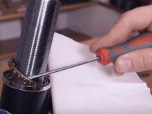 - Place the T-key so that its working (impact) end is not larger than the diameter of the sleeve. Insert the end into the hole in the ball bearing to pry off the gasket.
