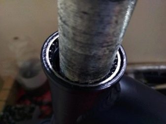 If the wheel itself sticks, it is possible that the ball bearings on it are destroyed. When a breakdown occurs on the wheel on which the brake is installed, it will be necessary to remove the brake pads in order to pull it out. The shock absorber may also be temporarily removed. Further steps to replace the bearings on the wheels remain the same. The number of balls on one wheel cage is most often 7–9, since the wheel axis has a small diameter compared to the steering axis.
