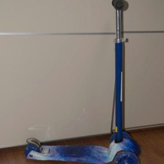 Reaction Mic B - A very beautiful unit with luminous wheels.Installed LEDs can protect your child on the evening road. There are Aves 7 bearings for speed skating. The maximum weight of the user is 50 kg, and the scooter is 2.35 kg. The diameter of the wheels is 120x80mm, the platform is 54x14 cm. When riding this scooter, you will have the opportunity to raise the wheel from 66 to 80 cm. Thus, the scooter will grow with the child. The design is made of plastic.