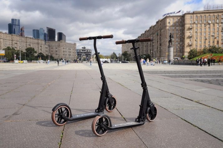 The adult version has a wheel diameter of 200 mm and a weight of 4.5 kg. Deck size 56x34 cm, steering wheel width 42 cm.In the Pro version, the weight of the scooter is 6.5 kg with a maximum load of 150 kg. Swivel steering wheel width 52 cm, height 89-107 cm. DA good shock absorber is added, smoothing out bumps on the road. The remaining characteristics are the same as in the children's species.