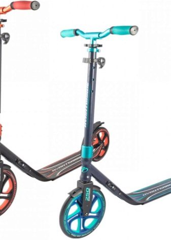 For a child under 4 years old, it is better to choose three-wheeled scooters, the design of which is more stable. Wheels of children's models are made so that they do not travel fast, thereby preventing the possibility of falls. And the bright design and the presence of luminous wheels in some models not only appeal to children, but also gives parents the opportunity to monitor babies from a distance. There are transforming scooters, which, as a baby grows up, can transform from a three-wheeled product into a two-wheeled one.