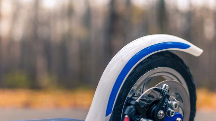 In some cases, the scooter wing is made of fragile materials - polymers or sheet metal. In this case, a special strong block is installed on the lower surface of the wheel, which performs the same braking function.
