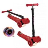 - SKL-06AH. Three-wheeled model for the smallest, recommended age - 1.5-5 years. Available in red, blue, green, orange, black and other colors. The product is made of aluminum and plastic. The wheel is adjustable in height between 51-72 cm. The scooter can withstand a weight of up to 25 kg, and it weighs only 1.8 kg. Attractiveness is added by polyurethane luminous wheels, the size of the front - 125 mm, rear - 80 mm.