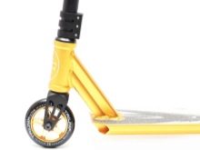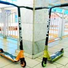 - SKL-051. Two-wheeled stunt scooter is designed for ages from 8 years. The sample has rubberized handles and a steel steering wheel, the size of the deck is 51x11 cm. The weight is facilitated by an aluminum frame. The diameter of the wheels is 110 mm.