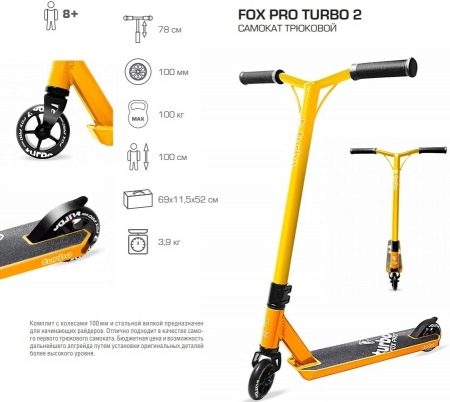 The optimal stunt model for those who plan to learn the basic elements of tricks. The scooter is suitable for use by riders with a height of 160 to 170 cm and a body weight not exceeding 100 kg. The scooter allows you to quickly develop speed even at a short distance, while maintaining it for a long time due to small wheels with a diameter of 110 mm.