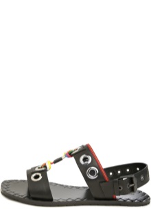 - with imitation of weaving on the lines of the upper part of sandals;