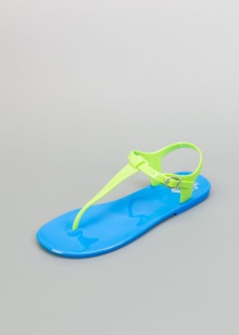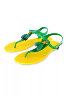 Lightweight women's sandals made of rubber go well with colorful swimsuits and pareos in color complemented by a hat with wide brim or sunglasses. Men's rubber sandals go well with bathing shorts or swimming trunks of various colors.