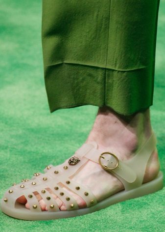 The design of various models of rubber sandals cannot but please fashionistas and fashionistas with their interesting and functional details.