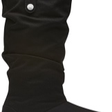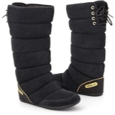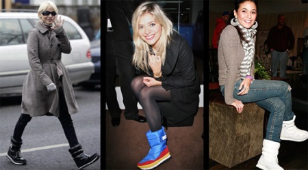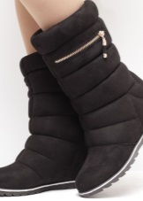 - Puffy boots are perfect for skinny jeans or warm trousers. Those who like to experiment can wear black nylon tights for such boots, and get an interesting and unusual look that will look great both in everyday wear and on weekends. If you want to put on puffy boots, jewelry and accessories are best minimized.
