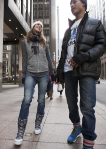 For those women who prefer warmth and comfort, Adidas created puffy boots or, as they are called, dutiks. “Blown” shoes because they seem to be filled with air. Such shoes are a rubber sole with a fabric upper.