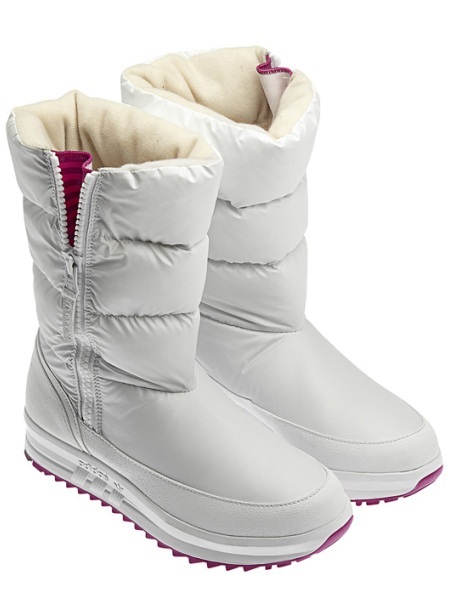 The top of the product is made of a heat-insulating material that keeps the legs warm even at -30 degrees, the manufacturer says; membrane tissue does not get wet even in the rain. Some models of puffy boots are equipped with the Ortholite antimicrobial insole; it blocks the development of microbes.