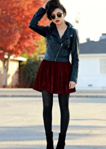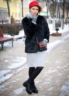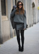 Short boots, unlike long ones, look great with any skirts. A universal option is a monochrome look. Black tight tights, black boots and a black pencil skirt with a light or bright top. If you wear ankle boots of a different color, try to choose tights to match. Thus, they will not “cut” the leg in half.