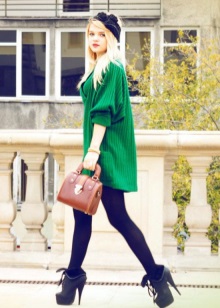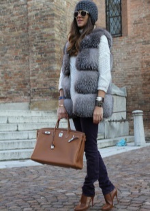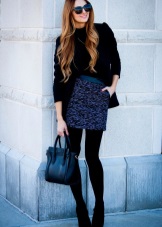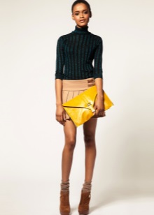 - Going to a fashion party or going to an evening cocktail with your friends? Choose trendy clothes: a white shirt, a vibrant geometric print jumper, suede mini skirt and heeled ankle boots. Of course, do not forget about warm tights, a short fur coat and accessories - a cute clutch bag and sunglasses.