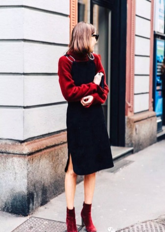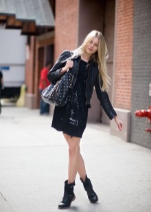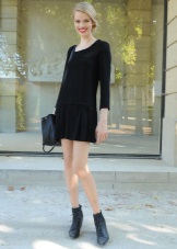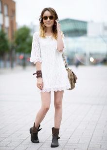 Ankle boots look great with a variety of dresses. It is best if it is a flying style, sewn from light fabric. For example, any dress in the style of boho, on top of which you can wear an elongated cardigan, complementing the look with a bag with a fringe and a felt hat.